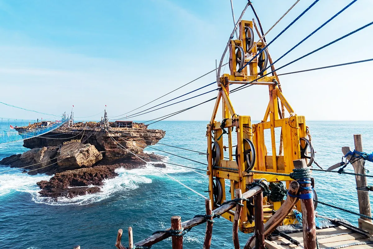 Paket Wisata Pantai Timang menawarkan pengalaman unik menyeberang laut dengan gondola tradisional. Aktivitas ini menjadi ikon wisata ekstrem Gunungkidul yang sangat diminati.
