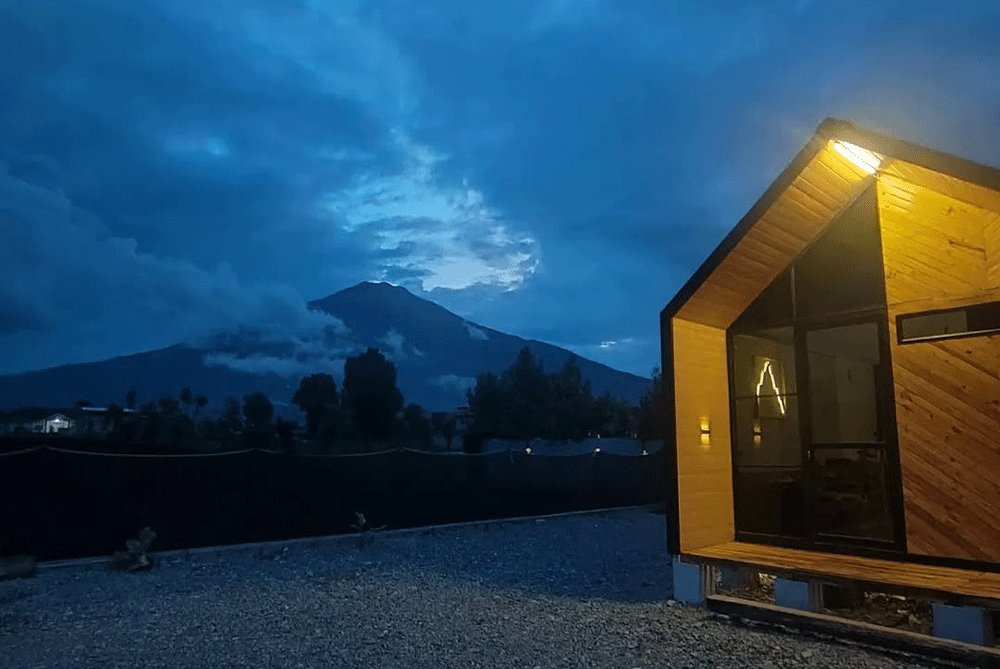 Banyak tamu yang suka berfoto di area taman depan villa, di tangga kayu, atau di balkon dengan latar Gunung Kerinci yang gagah. Waktu terbaik untuk berfoto biasanya pagi hari sekitar pukul 6–8, saat kabut masih turun lembut dan cahaya matahari belum terlalu terik.