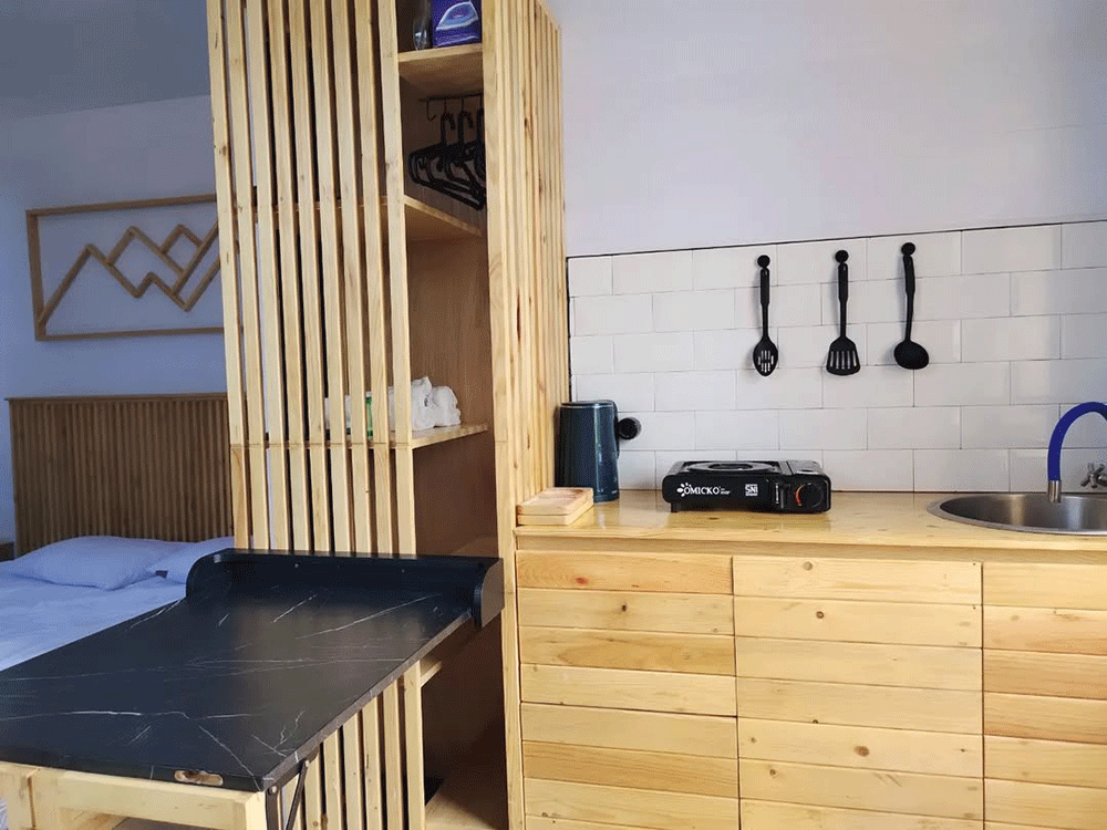 Di dalam kamar tersedia tempat tidur empuk, kamar mandi air hangat, televisi, serta akses Wi-Fi di area tertentu. Bagi yang datang bersama keluarga atau teman, tersedia juga dapur dan ruang makan untuk memasak atau makan bersama.